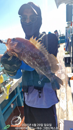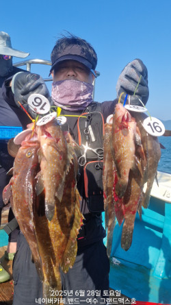 잔잔하게 손맛보다 5짜가 덜컥 나와줍니다.*** 여수 그랜드맥스호 예약안내 ***예약문의 선상낚시 : 010-9475-2308갯바위(선장님) : 010-3608-2308오시는길선상낚시 : 전남 여수시 어항단지로 18 (소경도대합실 앞)갯바위 : 전남 여수시 돌산읍 성두길 43홈페이지 : https://grandmax.sunsang24.com/