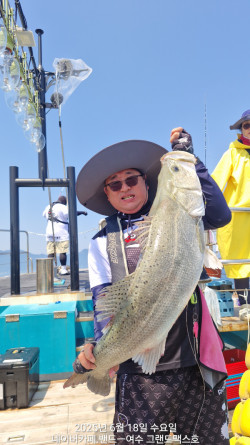농어 95cm. 빵이어마어마 합니다.*** 여수 그랜드맥스호 예약안내 ***예약문의 선상낚시 : 010-9475-2308갯바위(선장님) : 010-3608-2308오시는길선상낚시 : 전남 여수시 어항단지로 18 (소경도대합실 앞)갯바위 : 전남 여수시 돌산읍 성두길 43홈페이지 : https://grandmax.sunsang24.com/